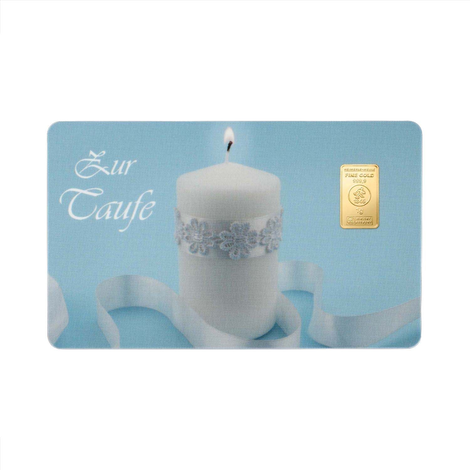 Ein unvergessliches und besonders wertvolles Geschenk zur Taufe: Diese Finecard enthält einen Barren aus 1g 999,9er Feingold von Heimerle + Meule. Sie eignet sich ideal als bleibende Erinnerung an einen besonderen Moment im Leben eines Kindes.