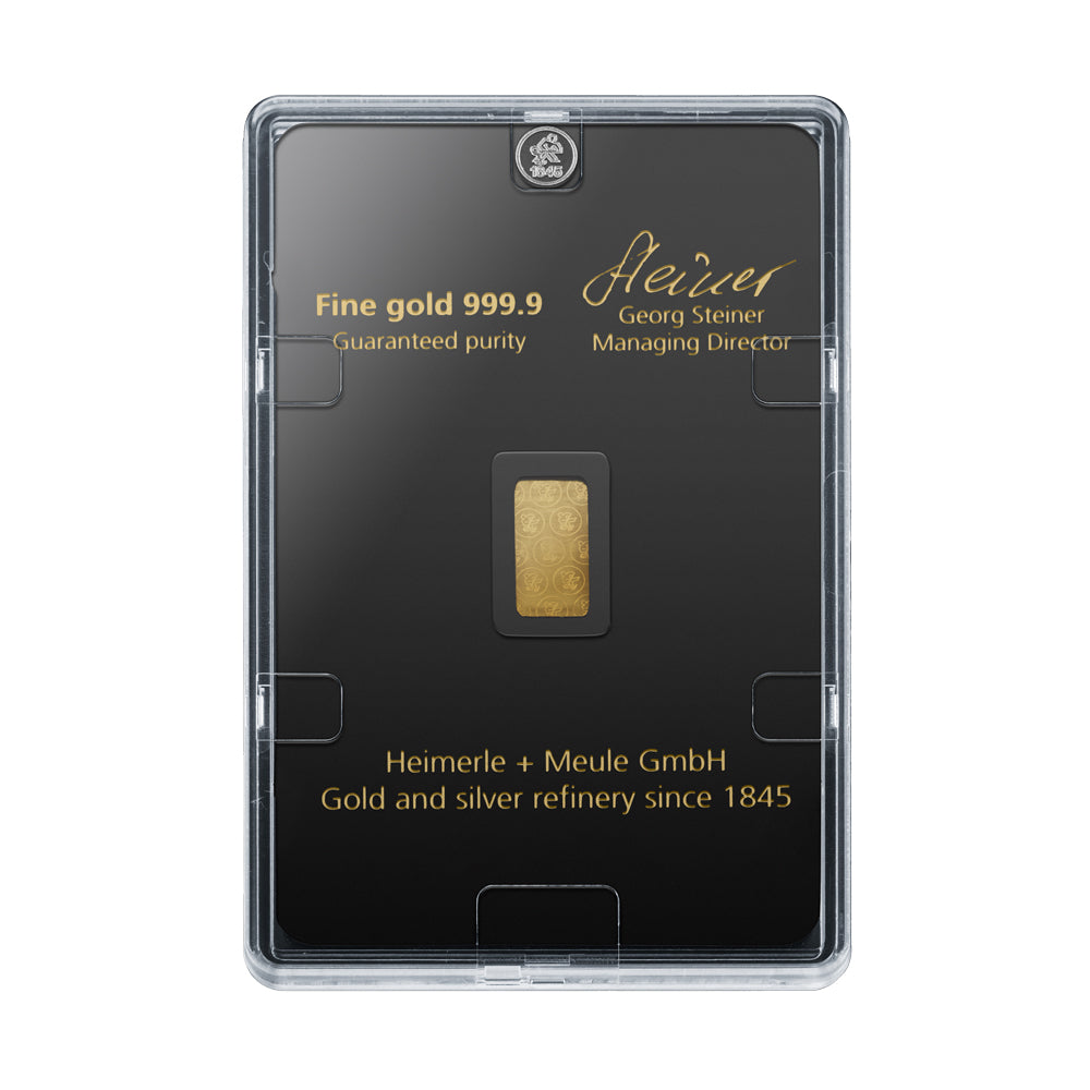 Heimerle + Meule, als Deutschlands älteste Gold- und Silberscheideanstalt (seit 1845), garantiert mit seinen geprägten Goldbarren höchste Präzision und Feinheit in der Verarbeitung.